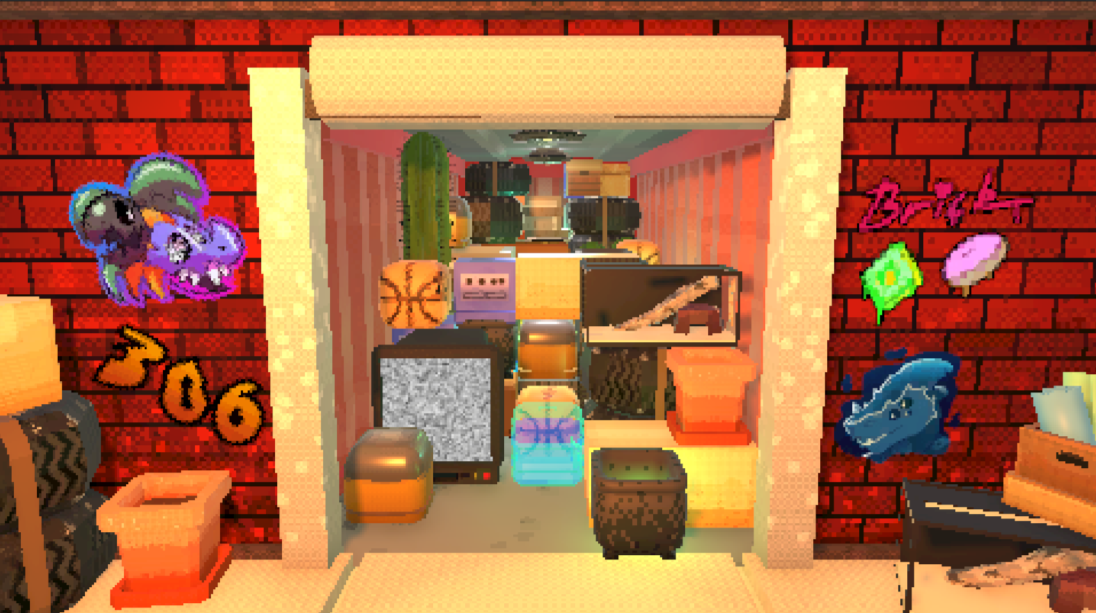It was made by five people for the 2025 Falling Block Jam in around two weeks. Owing to the theme, a lot of the placeables are old analog stuff! (consoles, CRT TV, etc.)