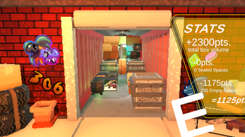 This Side Up is a game about stacking boxes in a storage unit. The object of the game is to pack as many of them as you can in the space you're given - which isn't a lot, but it's all you could afford.
